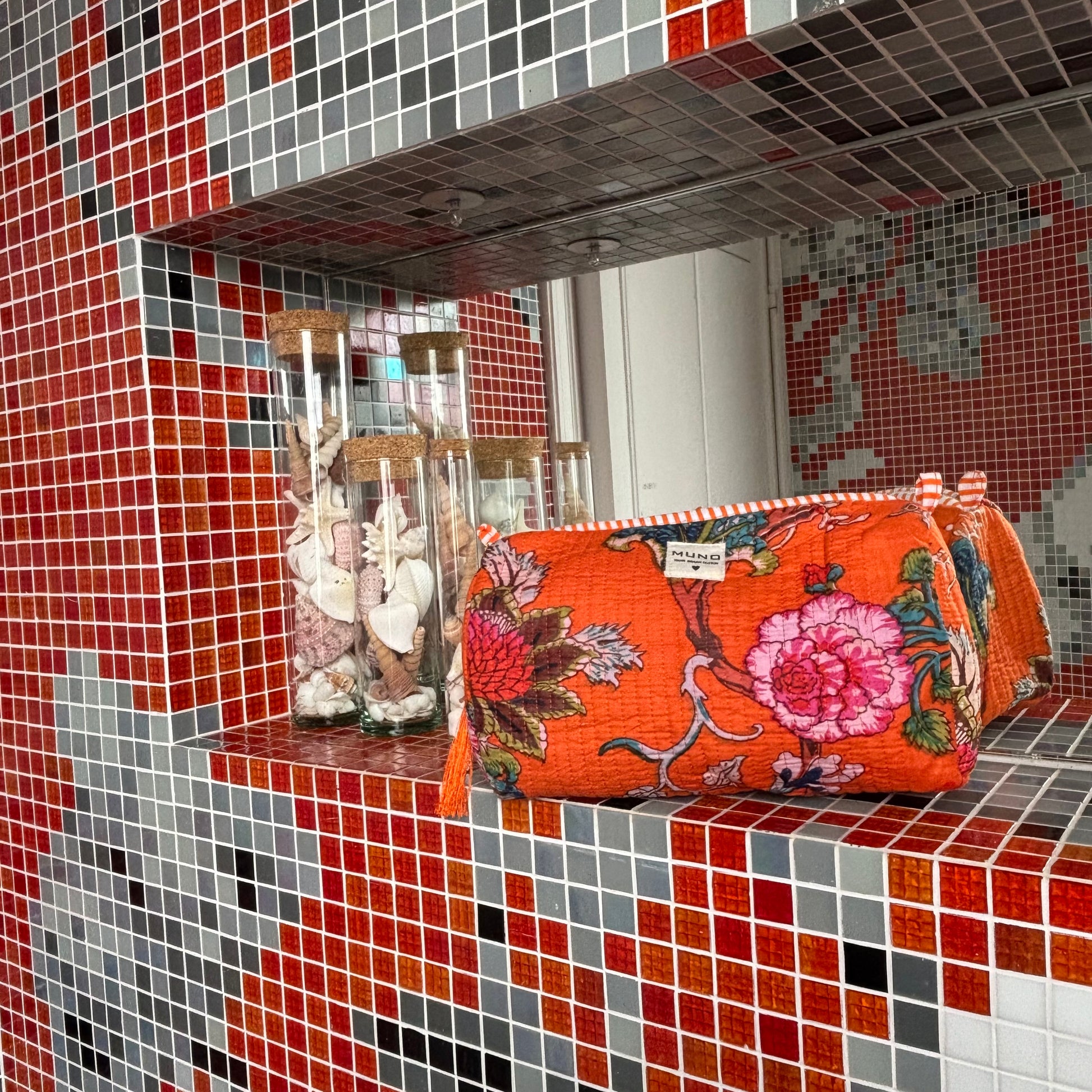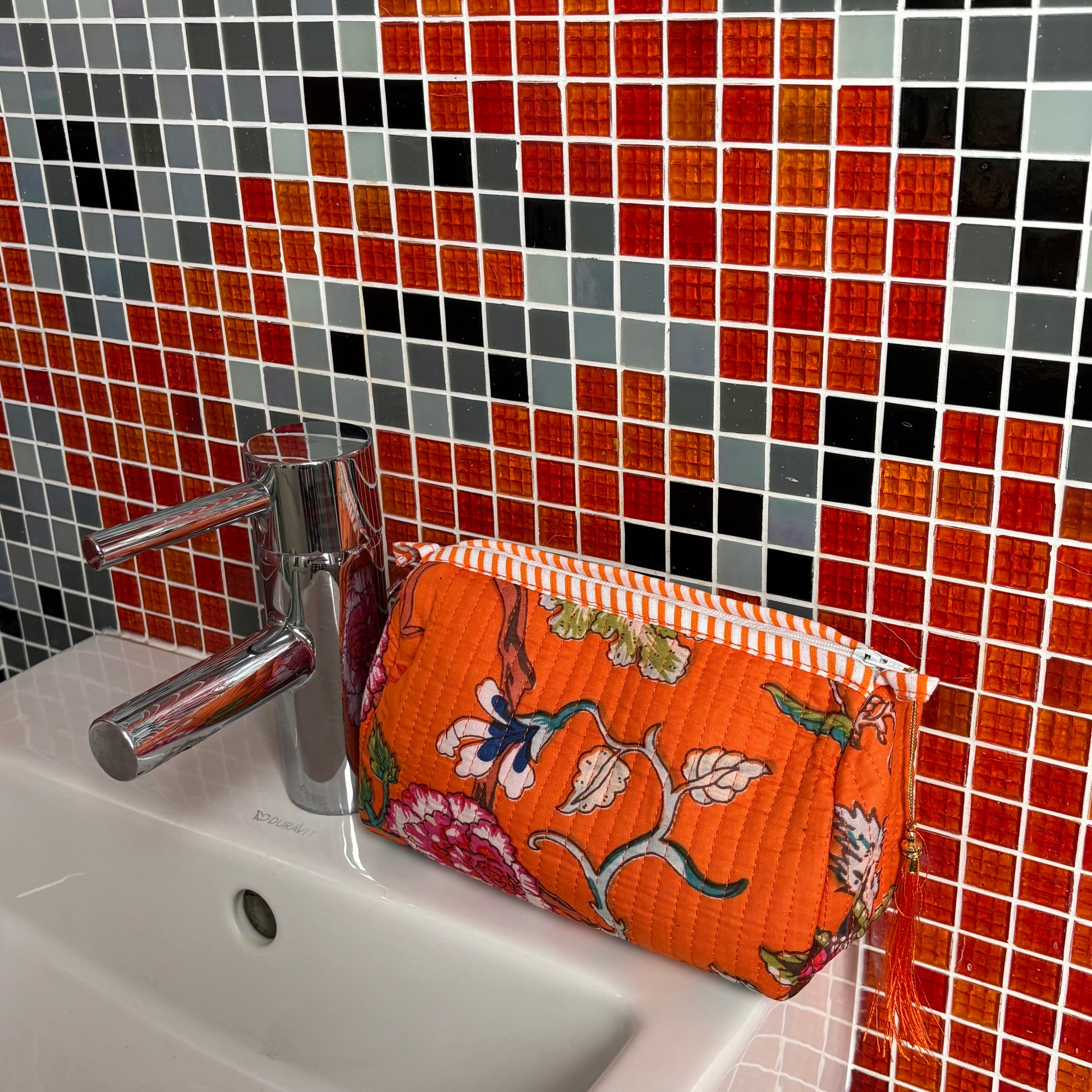 This stylish cotton toiletry bag is both practical and eye-catching, perfect for travel or everyday use. Made from high-quality cotton fabric with a beautiful printed design, it adds a touch of colour to your bathroom or suitcase.