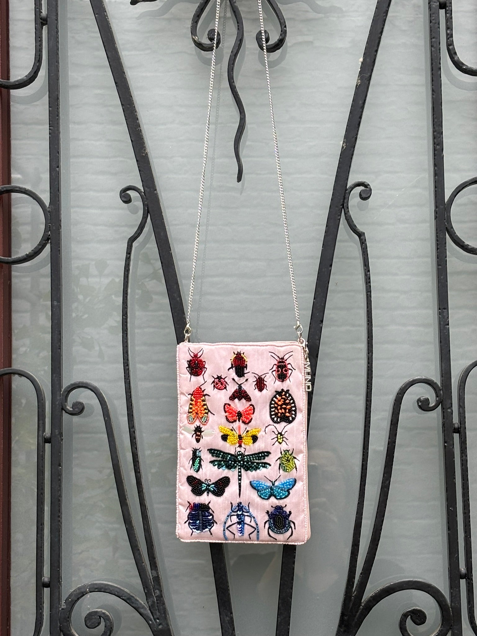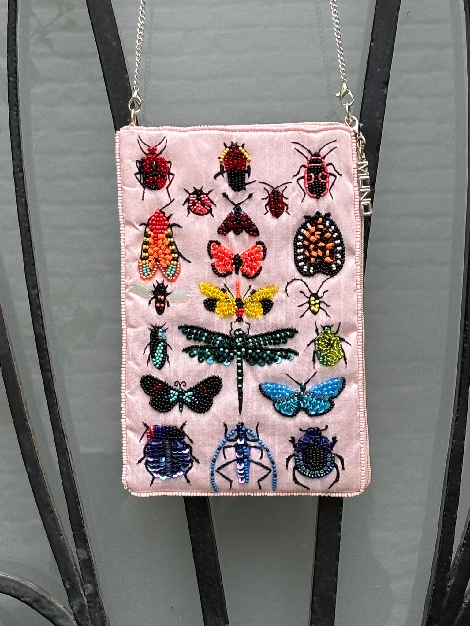 A celebration of nature’s wonders, this silk mini bag features intricate beadwork of colorful insects. Unique and artistic, it transforms everyday essentials into an elegant statement.