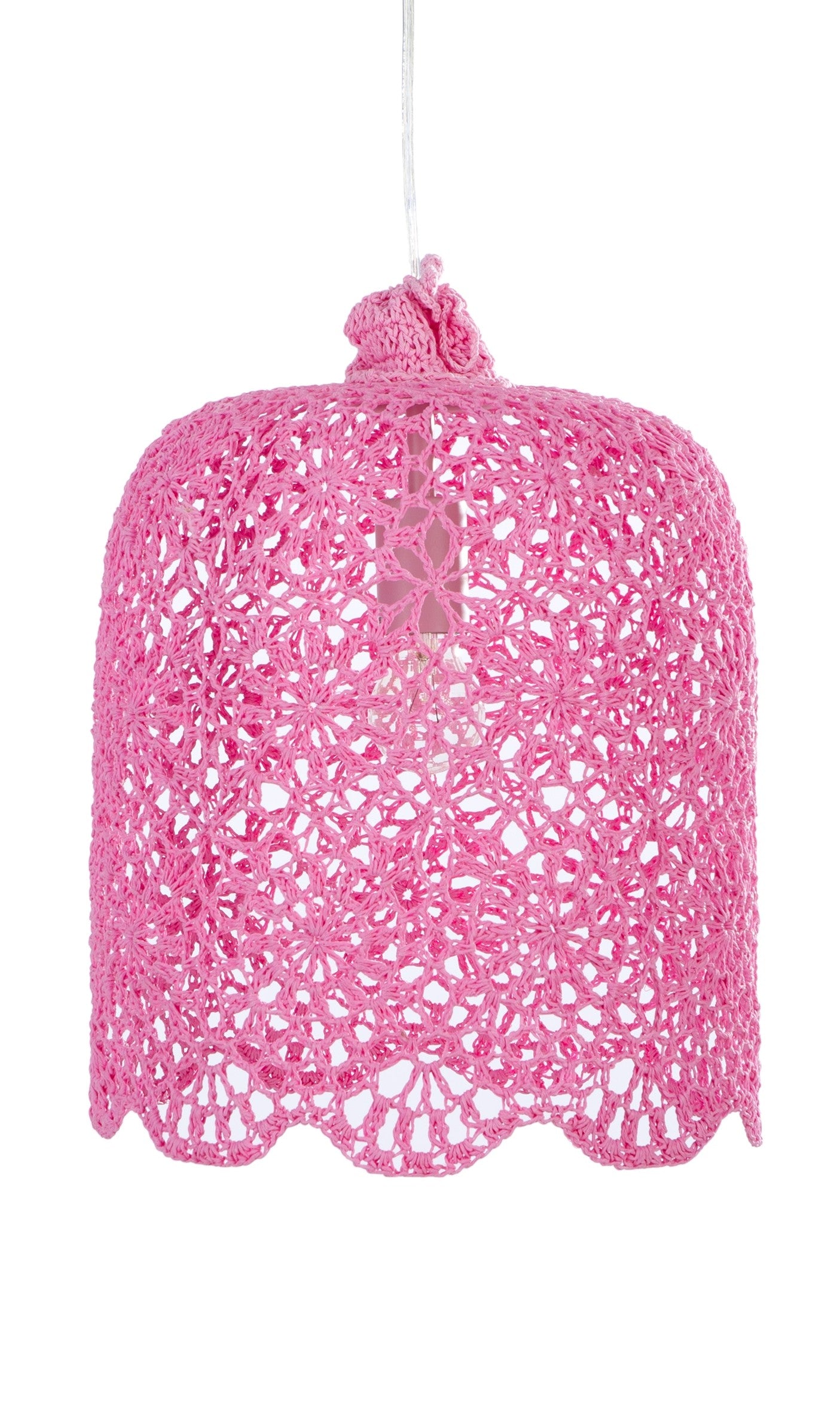 Handgemaakte gehaakte roze hanglamp.