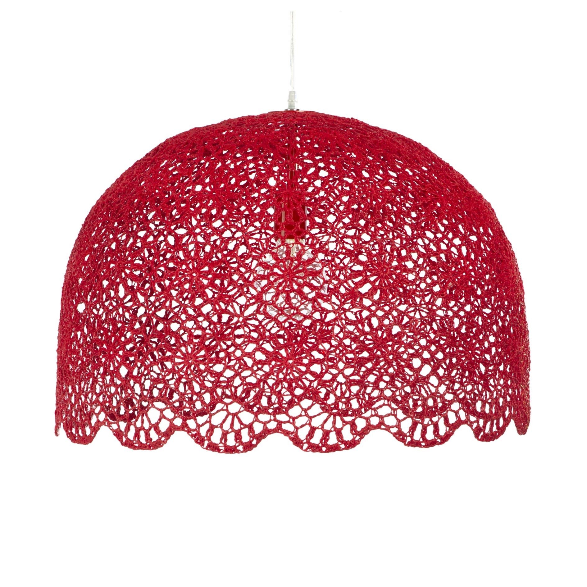 Handgemaakte gehaakte rode hanglamp.