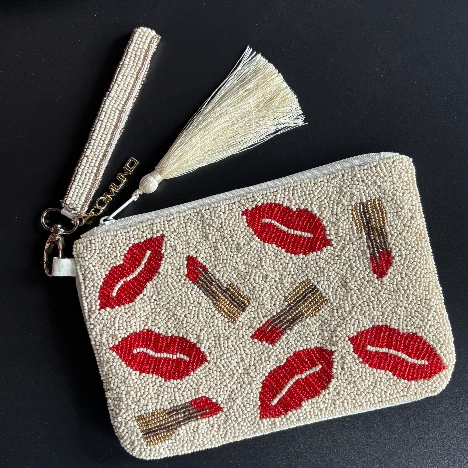Elevate your accessory game with this exquisite Handcrafted Beaded Lipstick Pouch.