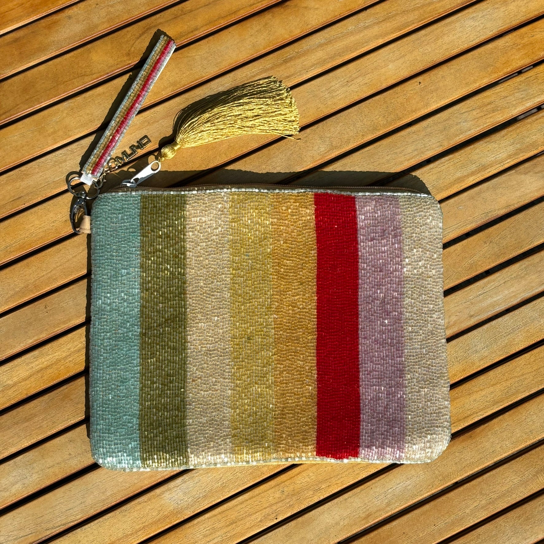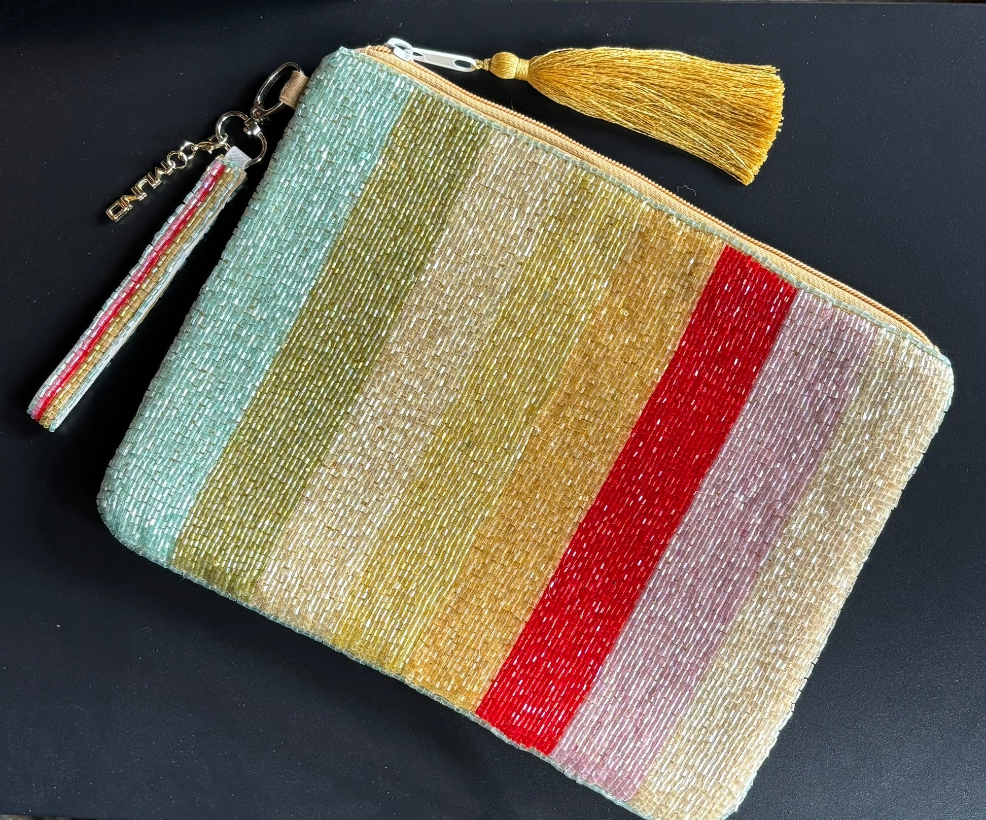 Elevate your accessory game with this exquisite Handcrafted Beaded Rainbow Pouch.