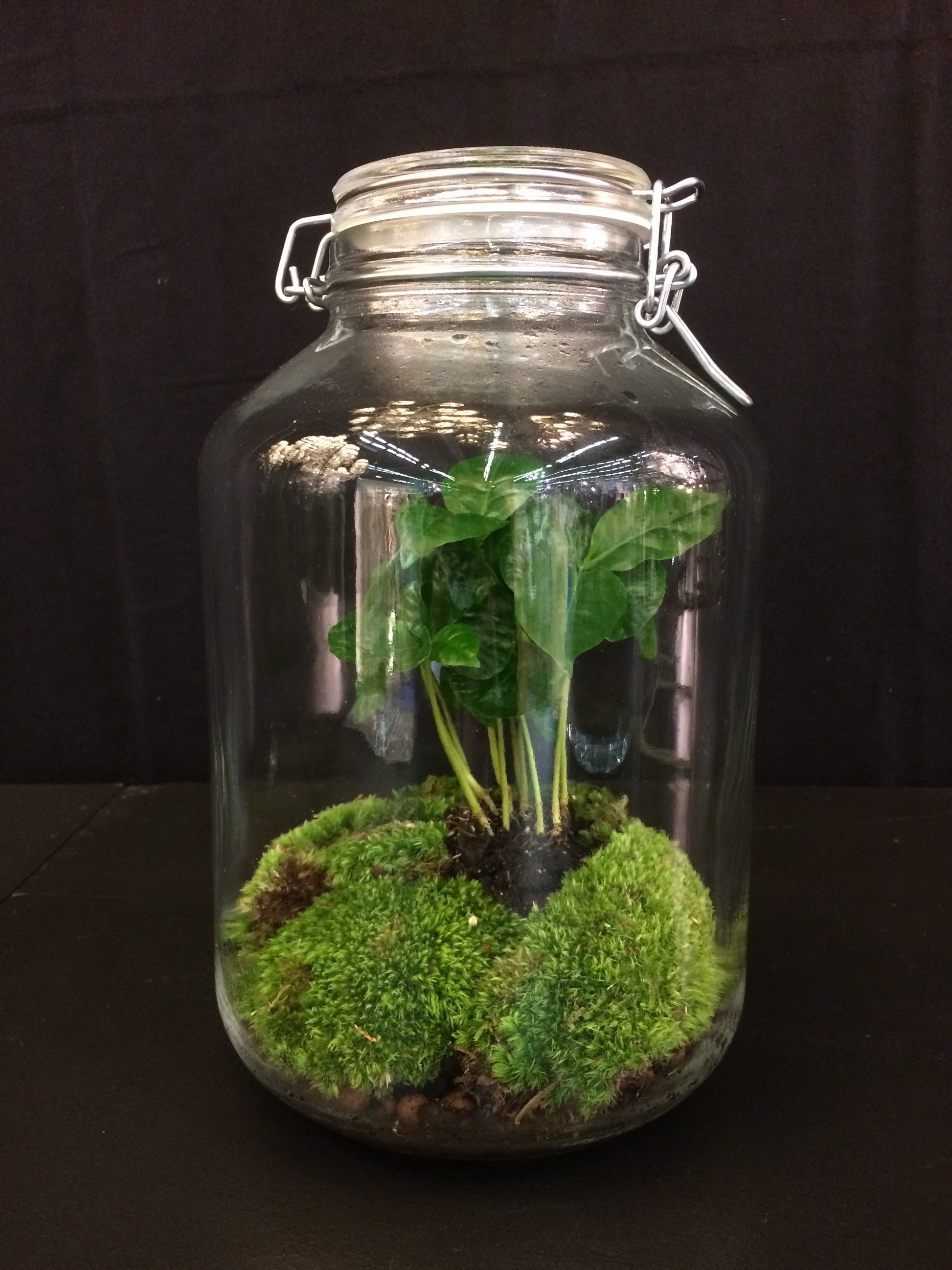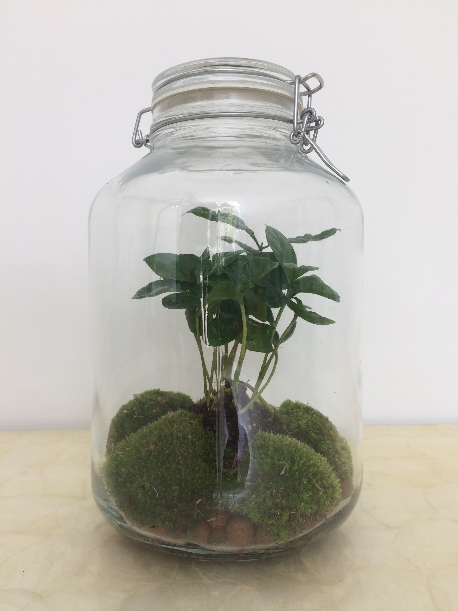 Open de pot en wrijf de binnenkant van het glas met een zakdoek of keukenrol; controleer de vochtigheid van het mos en sluit.